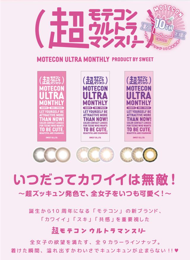 超モテコン ウルトラマンスリー 超アッシュグリーン 度なし 度あり 1month カラコン 1箱2枚 マンスリー なえなの