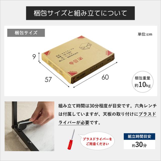 | 天板:マーブルホワイト(大理石柄)、ブラック(無地) フレーム:ブラック |