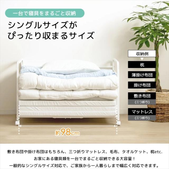 【値下げ】布団収納ラック キャスター付き 1段 幅104 奥行68 高さ63cm 奥行深型 ふとんラック 押入れ 収納 布団ラック 布団収納 押入れ収納 敷き布団 掛け布団 掛布団 布団入れ クローゼット中収納 ロータイプ 省スペース スリム 布団 カビ対策