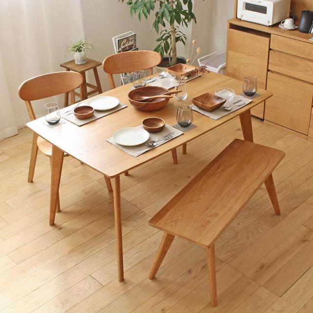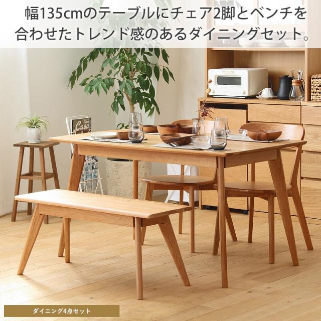 ダイニングテーブルセット [ダイニングテーブル 135cm・ベンチ・チェア 2脚] 4点セット ダイニングセット ベンチ ダイニングテーブル 幅135cm ダイニングチェア ダイニングベンチ 北欧 4人用 4人掛け おしゃれ イス チェア 木製 無垢 天然木 オーク 天然木