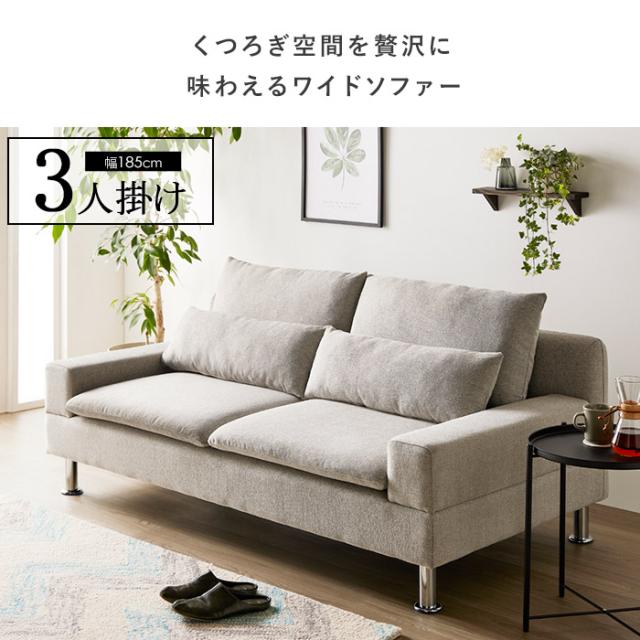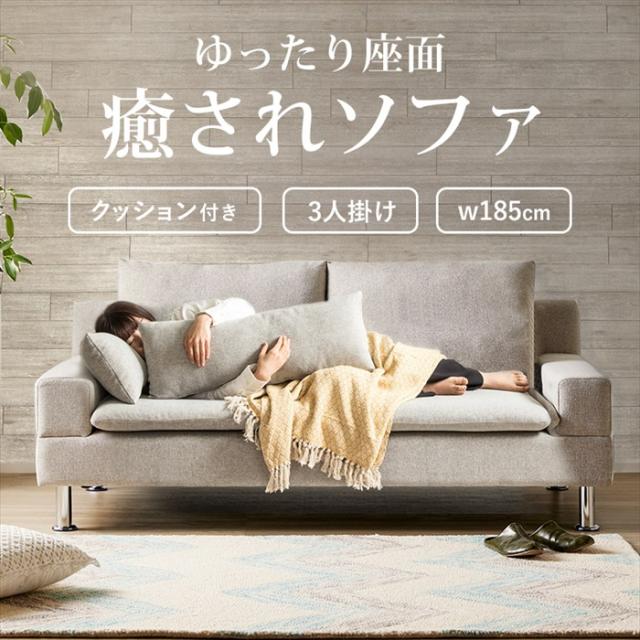 ソファー 3人掛け クッション付き 幅185cm 座面 広い 北欧 3人 ソファ 大きめ ワイド 韓国 インテリア おしゃれ グレー 座面ゆったり ソファ 三人掛け 3人掛けソファ ソファベッド 大きい 肘付き 肘あり ロー 脚付き 新生活 一人暮らし