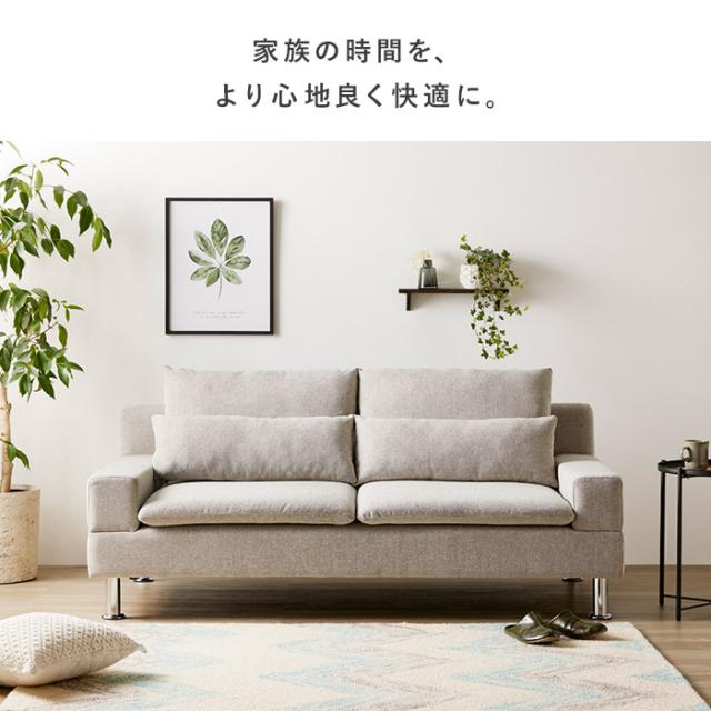 | 高級感あふれるくつろぎの空間を贅沢に味わえるワイドサイズの3人掛けソファー・ホルム。 北欧デザインのシンプルモダンで飽きのこない表情が、心地よいリラックス空間を創るのに最適です。 家族みんなが集まってくつろげる大きめサイズで、奥行が深いのでソファベッドの代わりにもなります。 腰当てクッションが付いており、膝上に置いたり枕にしたりと便利にお使いいただけます。 |