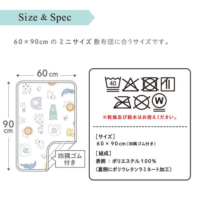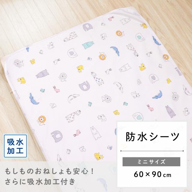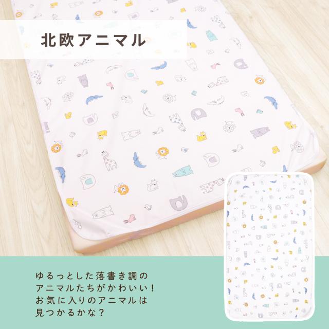 防水シーツ 60×90cm 北欧アニマル ベビー ミニサイズ 吸水加工 四隅ゴム ホワイト 白 動物 赤ちゃん おねしょ対策 出産 保育園 お昼寝 un doudou メール便発送(ポスト投函) NP