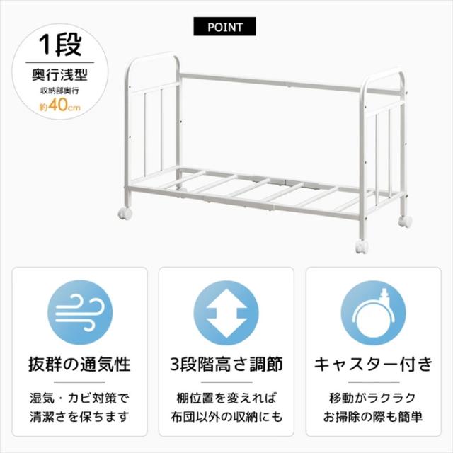 【値下げ】布団収納ラック キャスター付き 1段 幅104 奥行46 高さ63cm 奥行浅型 ふとんラック 押入れ 収納 布団ラック 布団収納 押入れ収納 敷き布団 掛け布団 掛布団 布団入れ クローゼット中収納 ロータイプ 省スペース スリム 布団 カビ対策