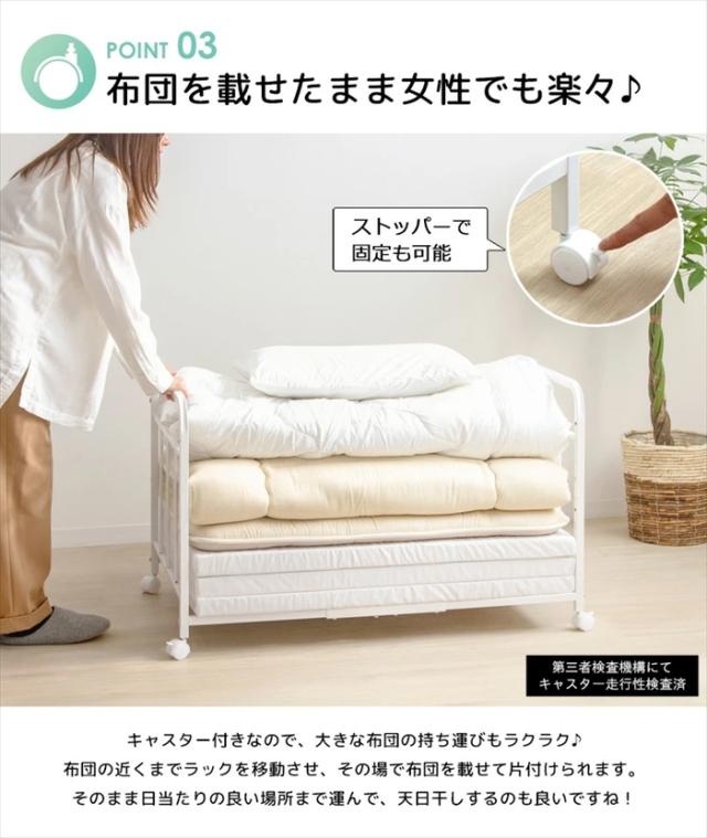 キャスター付きで移動も簡単なので、布団の上げ下げや持ち運びも楽々。