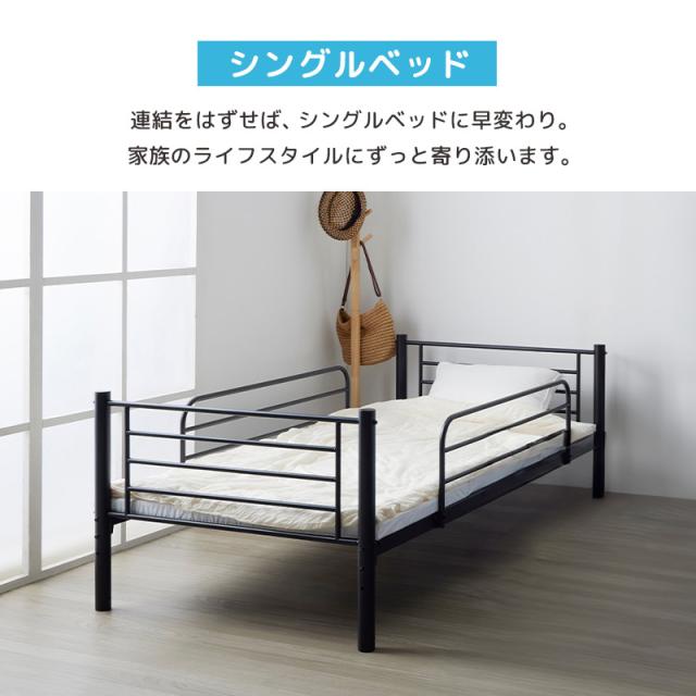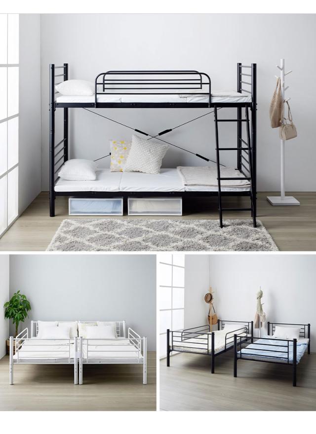 【値下げ】2段ベッド 分割 二段ベッド 子供 大人 パイプベッド シングル ベッド フレーム 単品 頑丈 耐荷重300kg 2段階高さ調整 シングルベッド ベッドフレーム シンプル 白 黒 ホワイト ブラック 分離 子供部屋 寮 学生 おすすめ 新生活 一人暮らし
