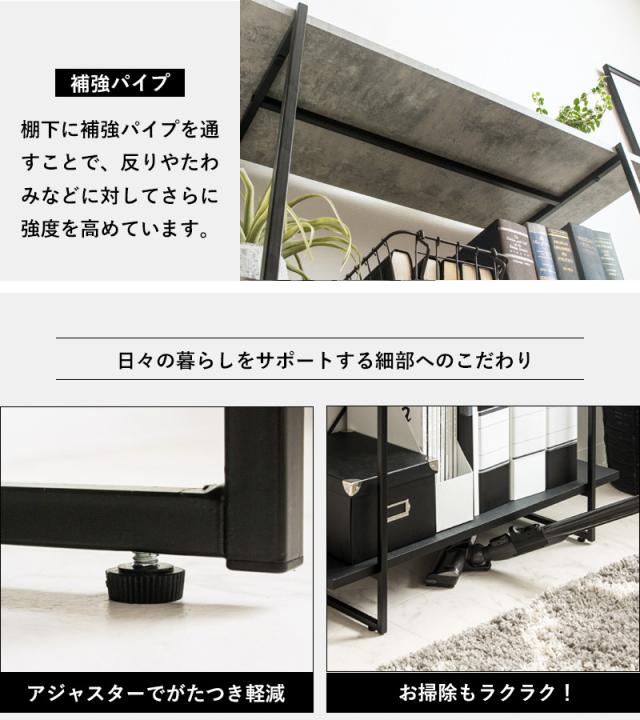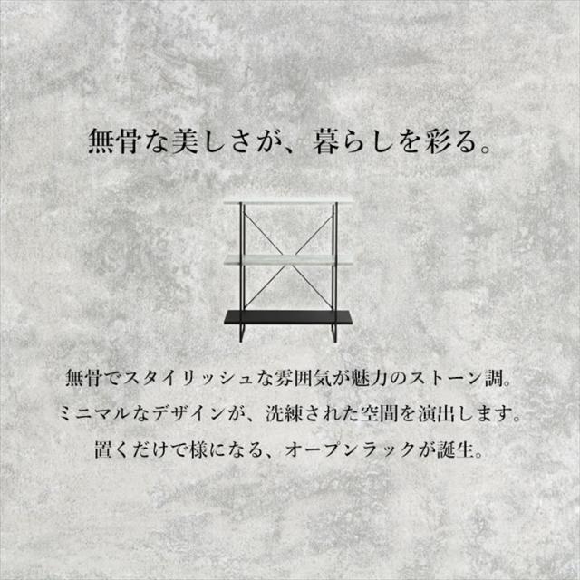 無骨でスタイリッシュな雰囲気が魅力のストーン調を生かしたオープンラック。