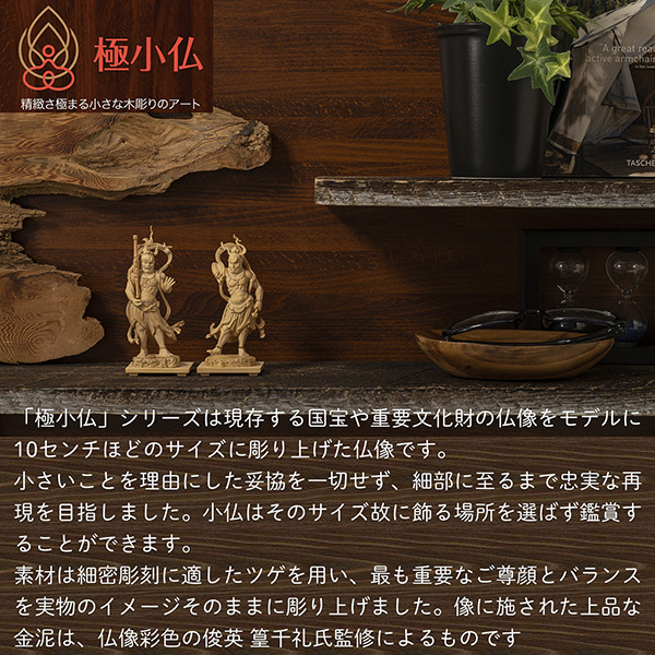 「極小仏」シリーズは現存する国宝や重要文化財の仏像をモデルに10センチほどのサイズに彫り上げた仏像です。