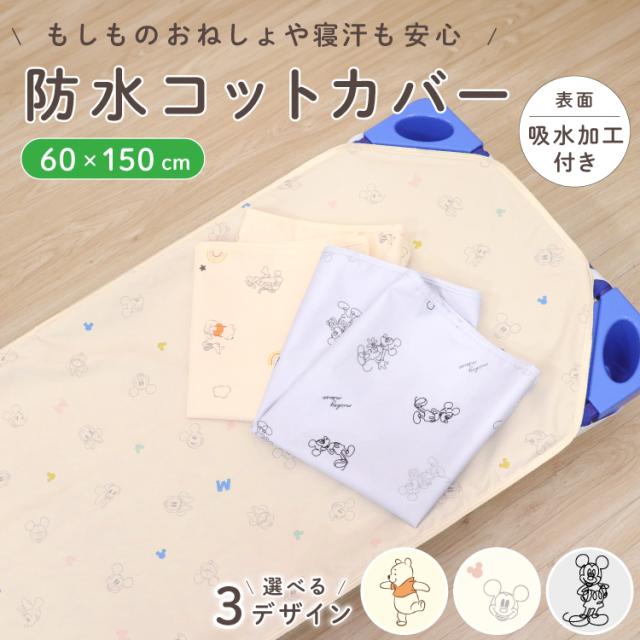 ディズニー お昼寝 防水コットカバー 60×150cm プーさん ミッキー ミニー コットシーツ 四隅ゴム付き ネームタグ付き お昼寝コット 午睡コット 保育園 幼稚園 入園準備 防水シーツ un doudou メール便発送(ポスト投函) NP