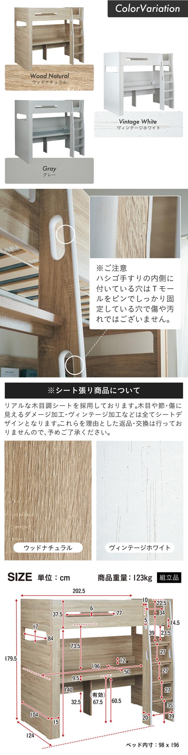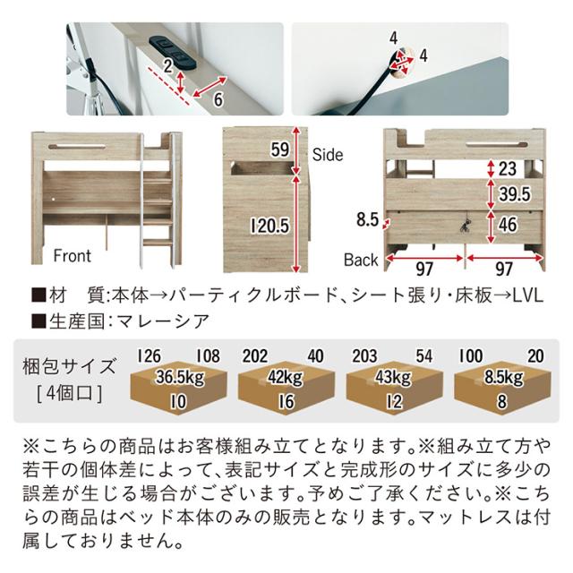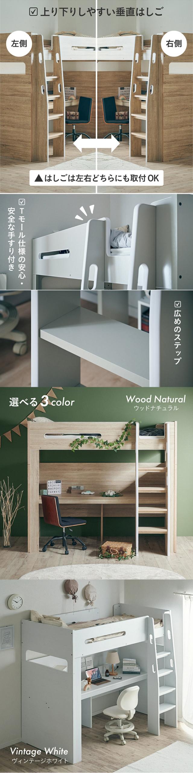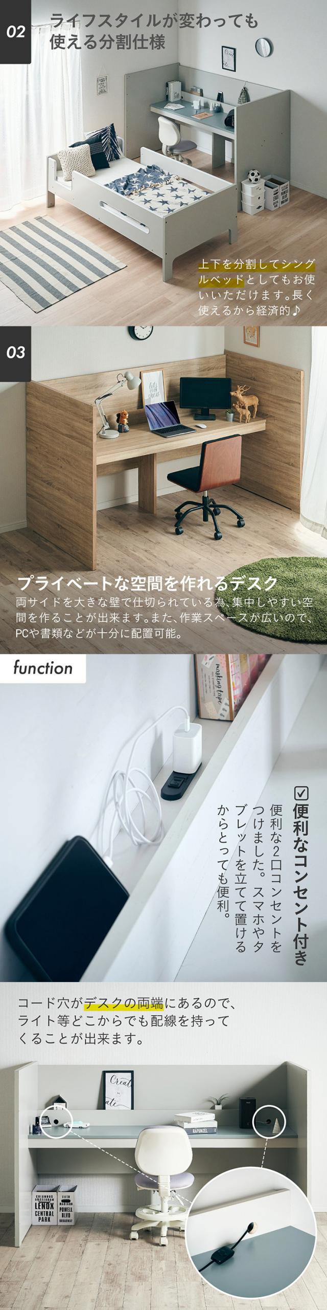 【コンセント付き/分割使用OK】ロフトベッド デスク付き システムベッド Britt(ブリット) 3色対応 システムベット ハイタイプ システムベッドデスク 学習デスク 学習机 木製 机 大人 子ども 子供部屋