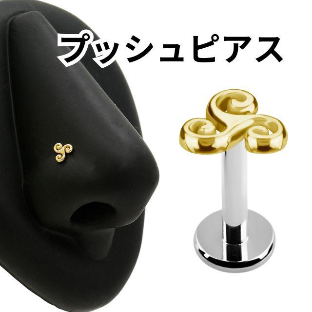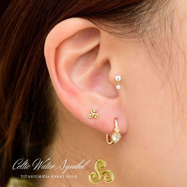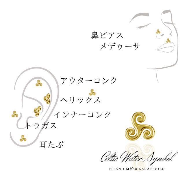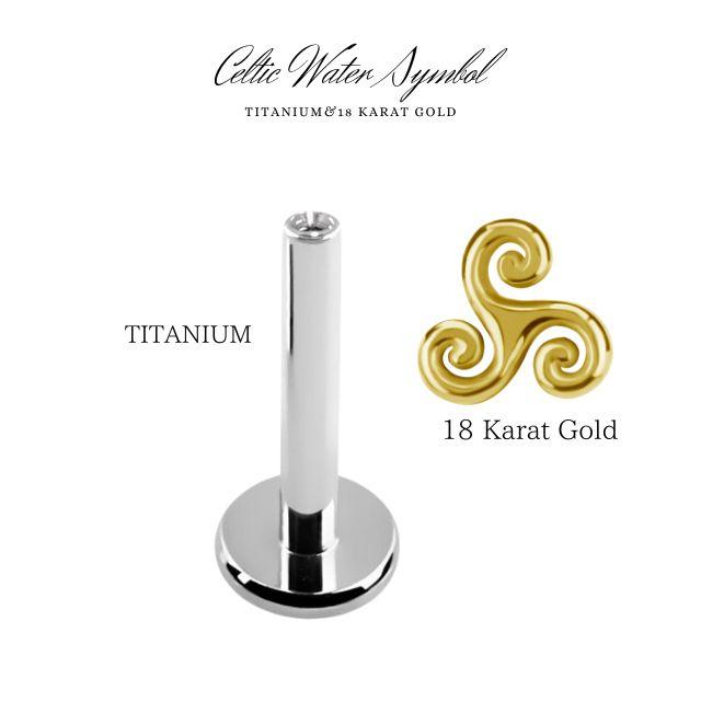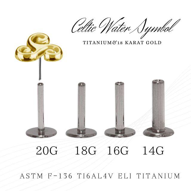 イエローゴールド 18金 ピアス celtic water プッシュピアス 20g 18g 16g 14g 18Kゴールド チタンピアス 金属アレルギー対応 ラブレットスタッド ボディピアス ロブ 軟骨ピアス