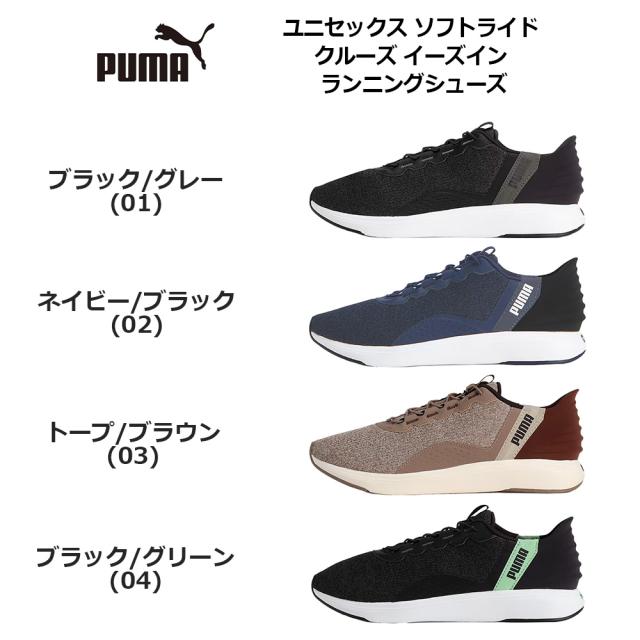 プーマ スニーカー ユニセックス ソフトライド クルーズ イーズイン ランニングシューズ PUMA レディース メンズ ブラック/グレー(01) ネイビー/ブラック(02) トープ/ブラウン(03) ブラック/グリーン(04) 24.0cm-29.0cm 311997 脱ぎ履きラクラク