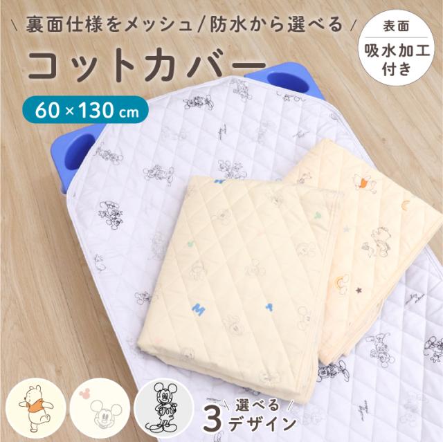 ディズニー お昼寝 コットカバー 60×130cm 裏面メッシュ 裏面防水 プーさん ミッキー ミニー キルティング コットシーツ 四隅ゴム付き ネームタグ付き お昼寝コット 午睡コット 保育園 幼稚園 入園準備