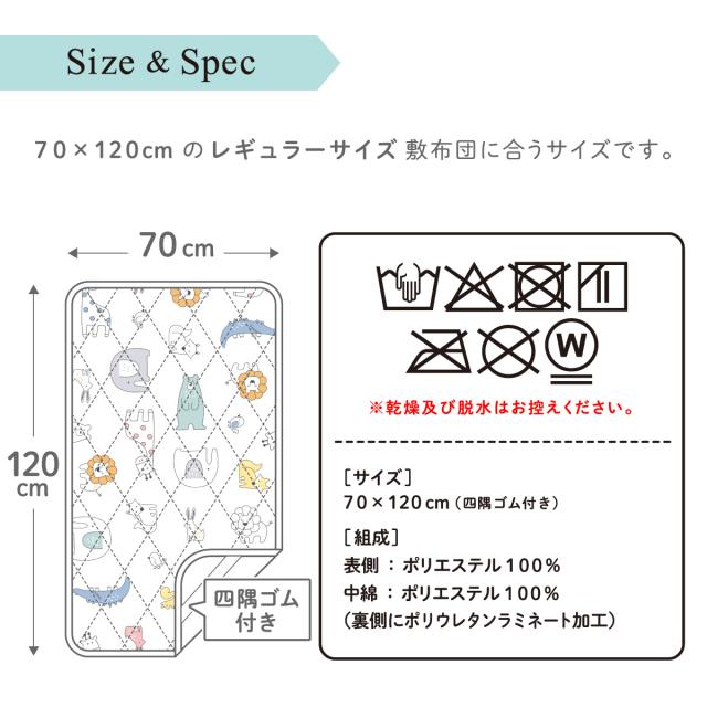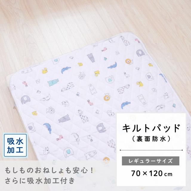 防水キルトパッド 70×120cm 北欧アニマル ベビー レギュラーサイズ 吸水加工 四隅ゴム キルト ホワイト 白 動物 赤ちゃん おねしょ対策 保育園 お昼寝 un doudou