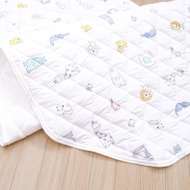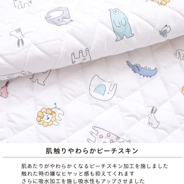 男の子 女の子 キッズ キルト ホワイト 白 動物 ピーチスキン生地