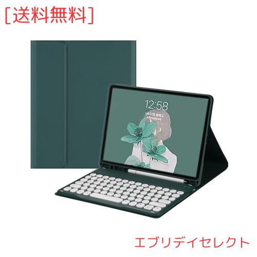 2022 iPad 第10世代 キーボード ケース 丸型キー 可愛い カラーキーボード カラフル アイパッド 第 10 世代 iPad 10 10.9インチ 分離式 キーボード付き カバー アップルペンシル 収納可能 (深緑)