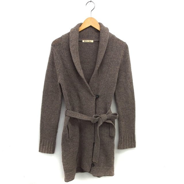 【中古】ブージュルード Bou Jeloud ニット コート ミドル ウール リボン リブ ショールカラー 茶 ブラウン /NT19
