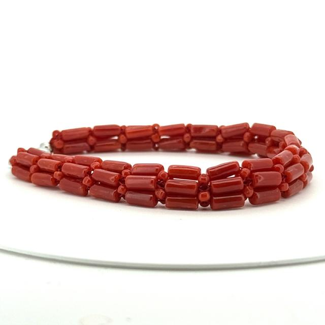 深紅の血赤珊瑚を使用した美しいデザインが特徴のレディース。