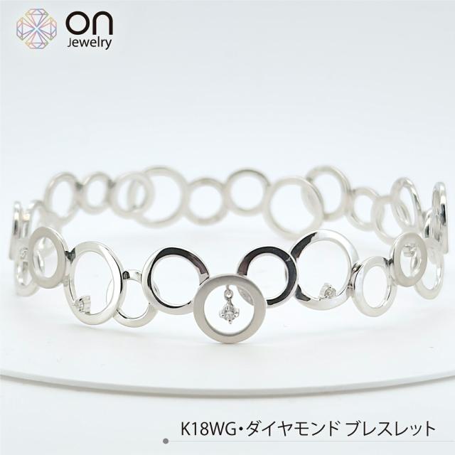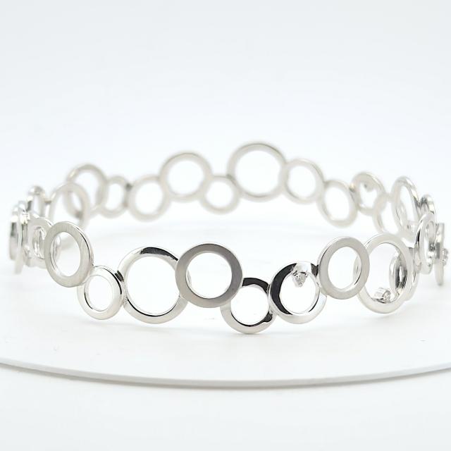 K18WG ダイヤモンド 0.1ct ホワイトゴールド バングル ブレスレット レディース 4月誕生石 高級