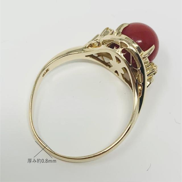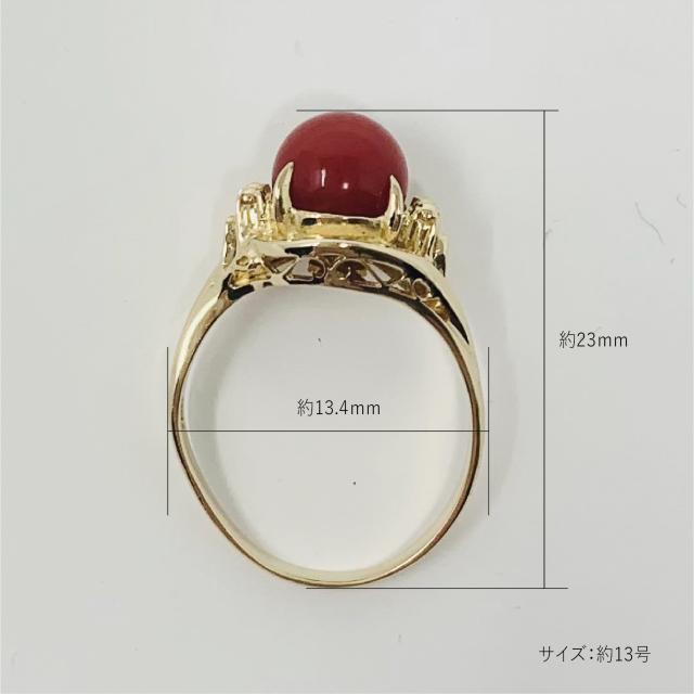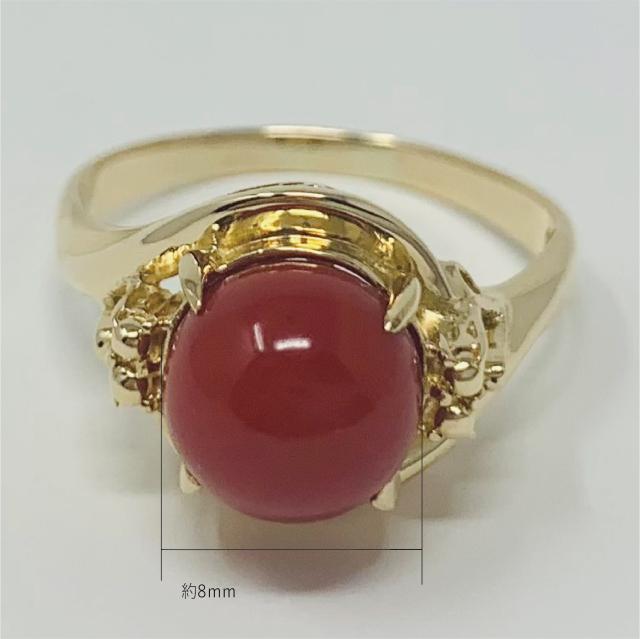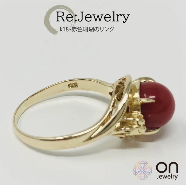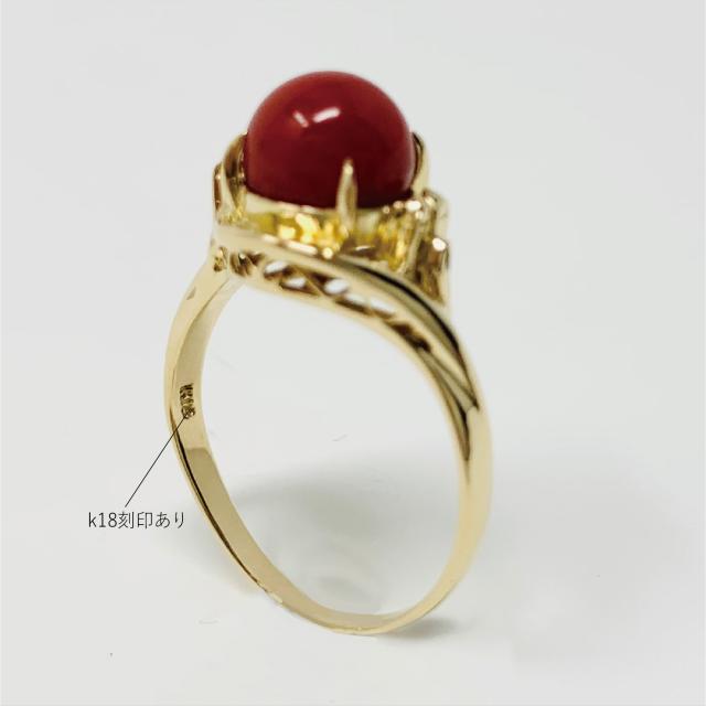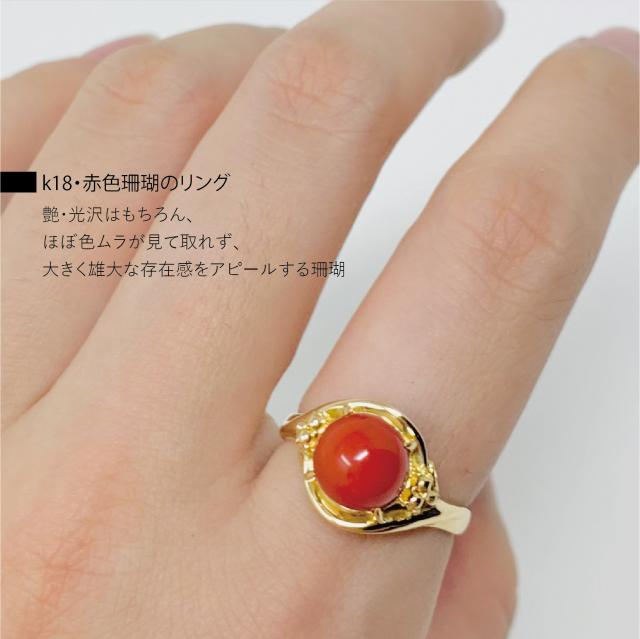 【新品仕上げ】K18 珊瑚 リング デザイン 指輪13号 ±4までサイズ直し無料 コンディションSランク 新品仕上げ済みの商品 血赤の丸珠がきれいなサンゴ 18金に纏った上品なジュエリー 3月誕生石