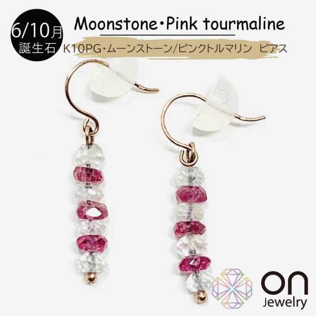 【新品ピアス】K10ゴールド ピンクトルマリン ムーンストーン 10月誕生石 6月誕生石 下がる 揺れる フック ピアス ピンク クリスマス 年末年始 お正月 成人式 プレゼント