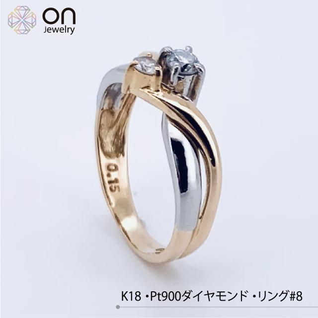 【新品仕上げ】K18 Pt900 ゴールド K18金 プラチナ900 ダイヤモンド0.15ct リング デザイン 指輪8号 ±4までサイズ直し無料 コンディションSランク 新品仕上げ済みの商品4月誕生石
