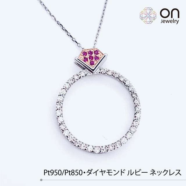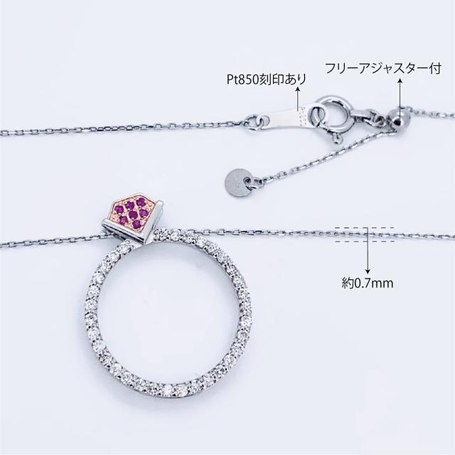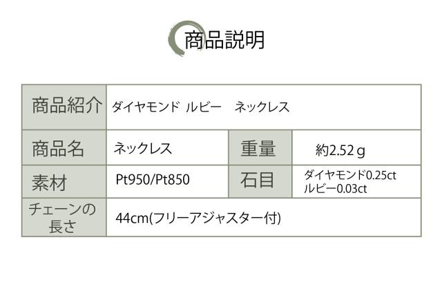 【新品商品】Pt950 Pt850 プラチナ950 プラチナ ルビー0.03ct ダイヤモンド0.25ct ネックレス チェーン あずきチェーン フリーアジャスター付 デザイン ネックレス 高級品 44cm ジュエリー プレゼント