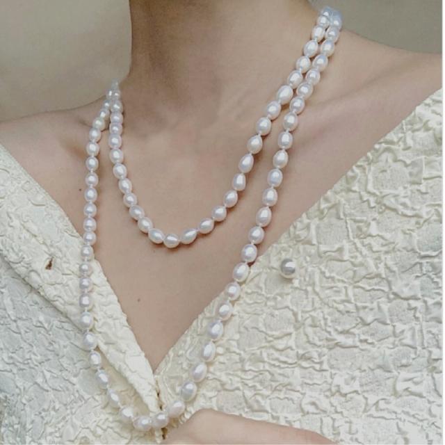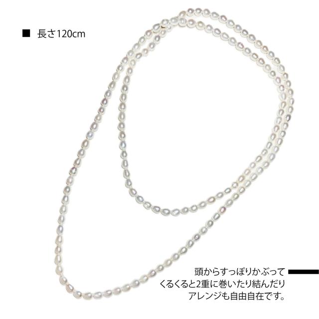 【新品商品】淡水パール 真珠 ネックレス 淡水真珠ライス ロング 天然パール 真珠 ローグネックレス パールネックレス 1連 120cm デザイン ネックレス 6月誕生石 結婚式 パーティー お祝い ジュエリー プレゼント