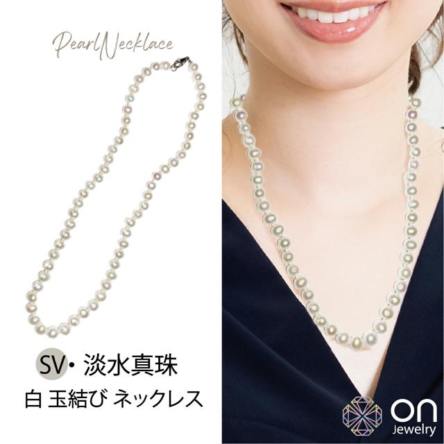 【新品商品】SV シルバー 淡水真珠 白 玉結び ネックレス 淡水真珠 天然パール 真珠 パール パールネックレス デザイン ブラック 白 6月誕生石 結婚式 パーティー お祝い ジュエリー プレゼント