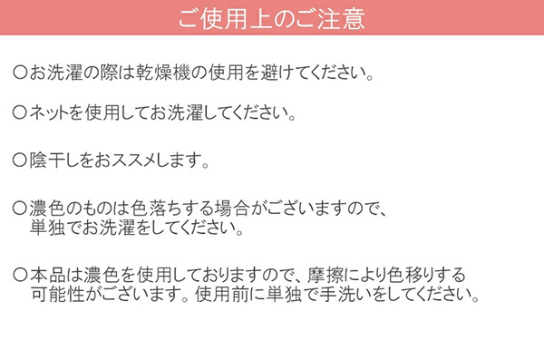 洗濯可能(ネット入れ) 陰干しおすすめ