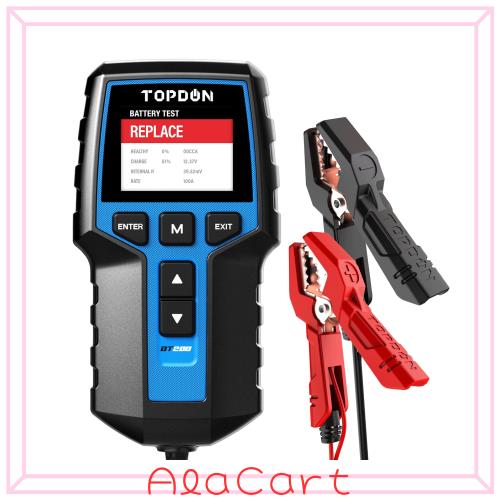 TOPDON BT200 バッテリーテスター、12V/24Vバッテリーチェッカー、100-2000 CCAテスター、CCA値/抵抗値/負荷/電圧のテスト 自動車用バッ