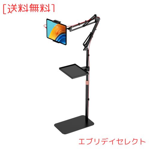 KUUVAN タブレット スタンド 床置き 伸縮式 iPadアーム 寝ながら 4.7-17.3インチ対応 45-140CM高さ調整 2.0KG耐荷重 小物置台付き 土台強