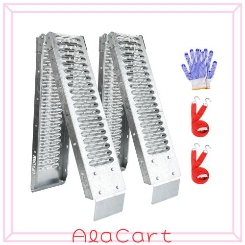 【注意事項】商品にはフック付くストラップがあります、載せる時にスロープが動くことが心配な場合、設置する車やトラック等に掛けてスロープを固定できます。手袋も付きますから、スロープを設置する前に、手袋をつけてください。ご注意:設備(バイク等)に乗ってこのローディングレールに上下しないでください。LIEKUMM ラダーレール バイク 長さ170*幅22cm スチール製 耐荷重440kg 軽トラ ラダー 折たたみスロープ 除雪機 スロープ バイク 車載 ラ