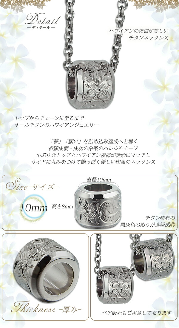| 商品名 | ハワイアンジュエリー ハワイアン ネックレス チタン リング スクロール プルメリア チタン製チェーン付き チタンアクセサリー |