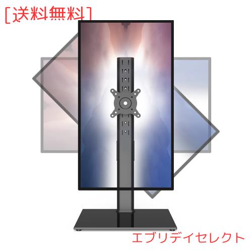 シングルモニタースタンド 自立型 27~43インチ モニターアーム 曲面スクリーンモニターマウント 強化ガラスベース 調節可能なモーション