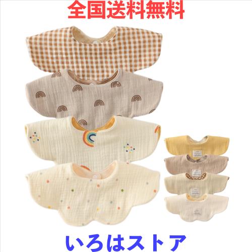 [GoUseGo] ベビー スタイ 4枚セット 両面使える 6重ガーゼ 赤ちゃん スタイ 女の子 男の子 よだれかけ おしゃれ 新生児 360度スタイ 無地