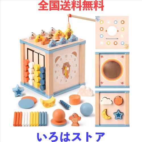 【安全で耐久性】無垢の木で作られたこの木のおもちゃは、細かく磨かれたエッジと頑丈で耐久性があります。 丸みを帯びた角は、お子様の小さな手のためにデザインされています。このアクティビティ・キューブは、無害な水性塗料を使用しており、1〜3歳の幼児向けの知育玩具としてご両親に人気です。