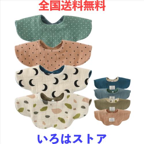 [GoUseGo] ベビー スタイ 4枚セット 両面使える 6重ガーゼ 360度スタイ 女の子 男の子 よだれかけ おしゃれ 新生児 赤ちゃん スタイ 無地