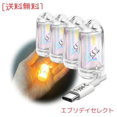 DOKEEP 超ミニ LEDライト 4個セット 超軽量 11g USB-C充電式 EDC 高輝度 ミニ 懐中電灯 ポケットライト 防水 ミニ投光器 点灯3~50時間 (