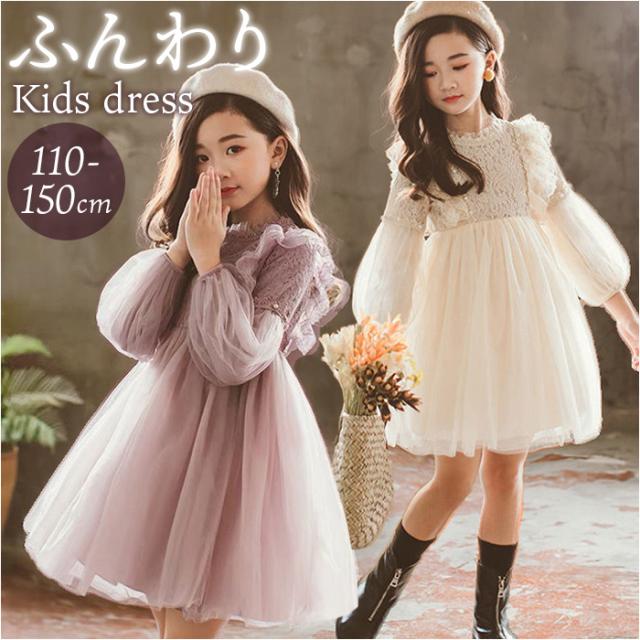ワンピース 子供 フォーマル 通販 フォーマルドレス 長袖ワンピース フォーマルワンピース 女の子 かわいい おしゃれ ラウンドネック メッシュパフスリーブ 長袖 ピアノ発表会