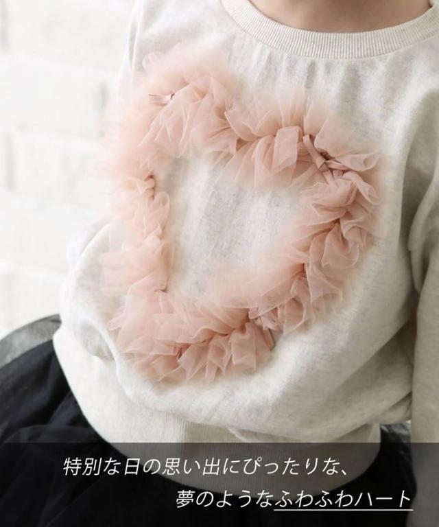 キッズ トレーナー 女の子 通販 スウェット 73032402 プルオーバー スエット 綿100% コットン 裏毛 小学生 ジュニア 通学 フリル ハート 秋冬 春 秋 かわいい オシャレ 可愛い おしゃれ トップス 子ども服 子供服 キッズファッション