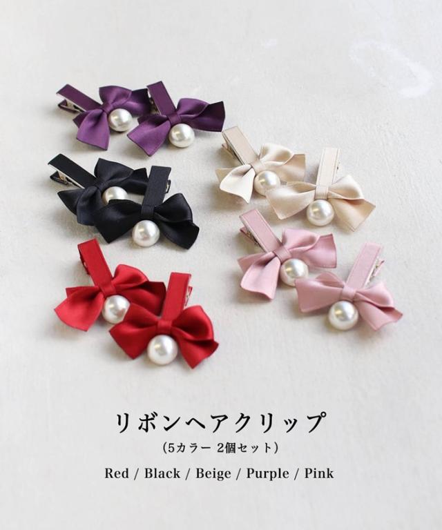 ヘアクリップ キッズ 2個セット 通販 ヘア クリップ 68522302 あいリボンヘアクリップ リボン パール 子供 女の子 大人っぽい 卒園式 入学式 結婚式 発表会 可愛い おしゃれ かわいい オシャレ ヘアーアクセ ヘアアクセサリー キッズファッション