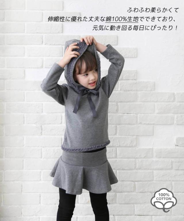 キッズ 女の子 おしゃれ 服 セットアップ 通販 上下セット 秋冬 72012402 長袖 パーカー スカッツ スカートパンツ フーディー フリル 綿 コットン かわいい カジュアルセットアップ カジュアルスカートセット 子ども服 子供服 キッズファッション
