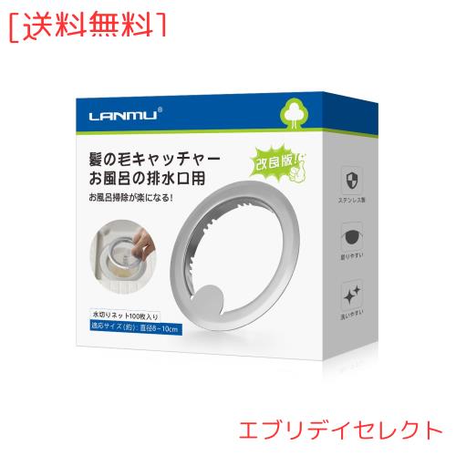 LANMU 髪の毛キャッチャー お風呂 排水口ネットホルダー 100枚 水切りネット付き排水溝 ゴミ受け ステンレス製 髪の毛 細かなゴミ お風呂