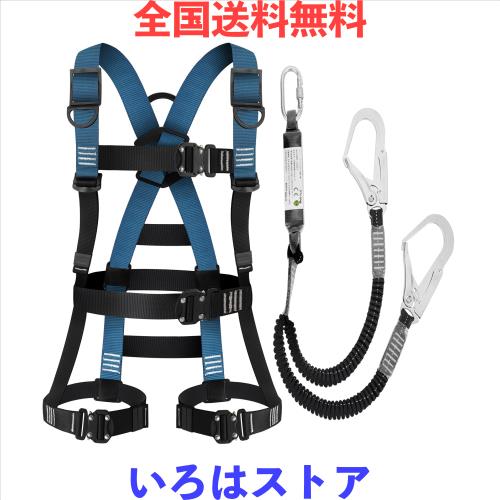[lifning] 安全帯 フルハーネス ハーネス フルハーネス安全帯 新規格 セット 墜落制止用器具 サイズ調整可能 (ブルー)