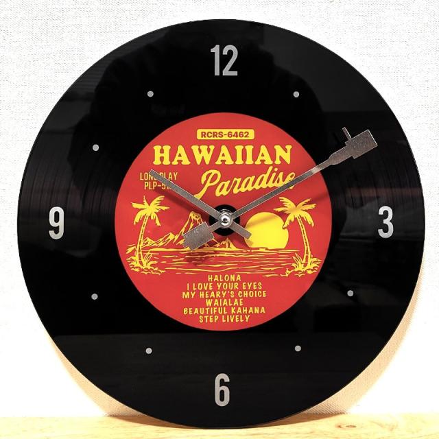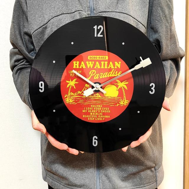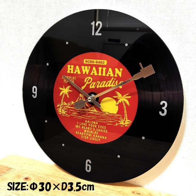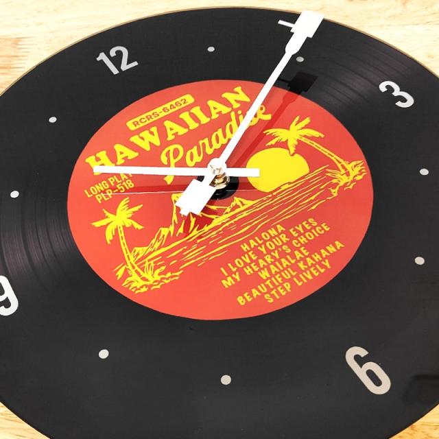 掛時計 ガラス ハワイアン レコード ウォールクロック おしゃれ サーフ インテリア アンティーク ブラック レッド かわいい レトロ 壁掛け ディスプレイ