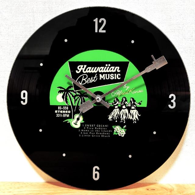 「ガラスウォールクロック ハワイアンレコード グリーン」