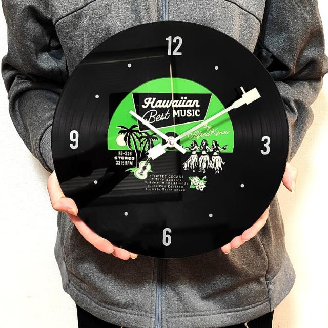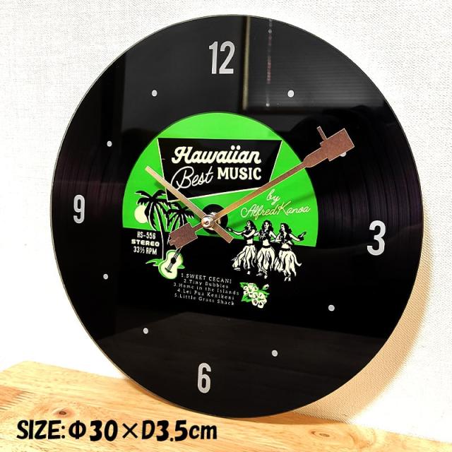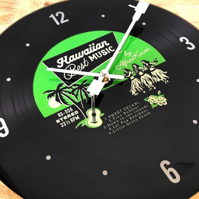 掛時計 おしゃれ レコード ハワイアン ウォールクロック アンティーク 壁掛け インテリア ブラック グリーン サーフ レトロ ディスプレイ 可愛い