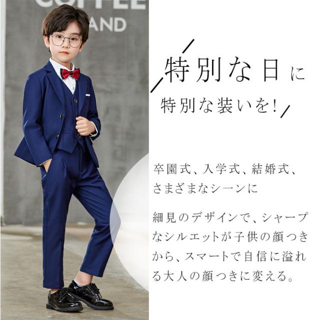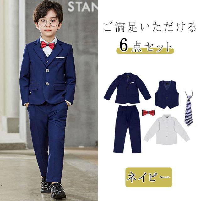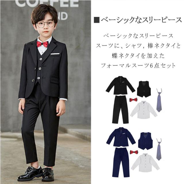 卒業式 スーツ 男の子 入学式 子供スーツ フォーマル キッズスーツ フォーマルスーツ ネクタイおまけ スーツセット一式 6点セット シャツ ジャケット パンツ タキシード 七五三 発表会 卒園式 入園式 結婚式 子供服 ジュニアスーツ 男児 上品