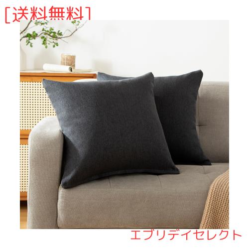 ◆商品名:Haguko クッションカバー 40x40 2枚セット 黒 北欧 綿麻テクスチャー リネン風 ピーチスキン ソフトタッチ 座布団カバー ソファ背当て 装